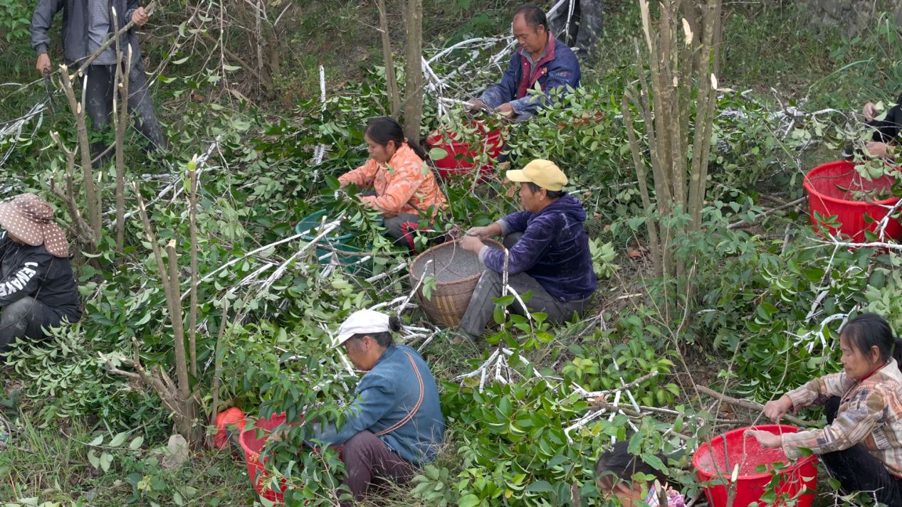 清晨的阳光洒在万亩女贞林上,李顺琪带着附近的村民一起上山,开始了新一天的采收。李顺琪丈夫家在芷江镇龙口村,祖祖辈辈有种白蜡的传统。初来乍到,这里给她最深的印象,就是八月里那片奇特的“雪景”——女贞树上挂满洁白如玉的白蜡。语言不通、习俗不同,这个外来媳妇却对白蜡产生了浓厚兴趣。她跟着丈夫学习种植技术,从最基础的挂虫、采蜡做起。