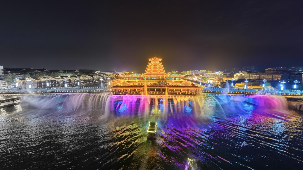 夜幕降临,芷江和平湖夜游项目热度攀升。随着游船缓缓驶离码头,龙津风雨桥的璀璨灯火、天后宫的古朴轮廓、万和鼓楼的民族纹样在夜色中依次展现,游客们在徐徐河风中沉浸式感受“夜芷江”的浪漫氛围。