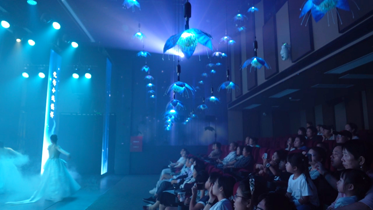 晚上7点半,非遗大秀《芷此千年》在飞虎风情街非遗剧院准时开演。舞台上,一株“芷草”破土而出,随光影舒展枝叶,以“守望者”的视角串联起芷江千年故事,将屈原辞赋、侗乡风情、和平记忆与巫傩古韵熔于一炉,让观众在35分钟的沉浸式体验中领略芷江的千年文脉。不少游客被“一株芷草串千年”的独特叙事深深打动。