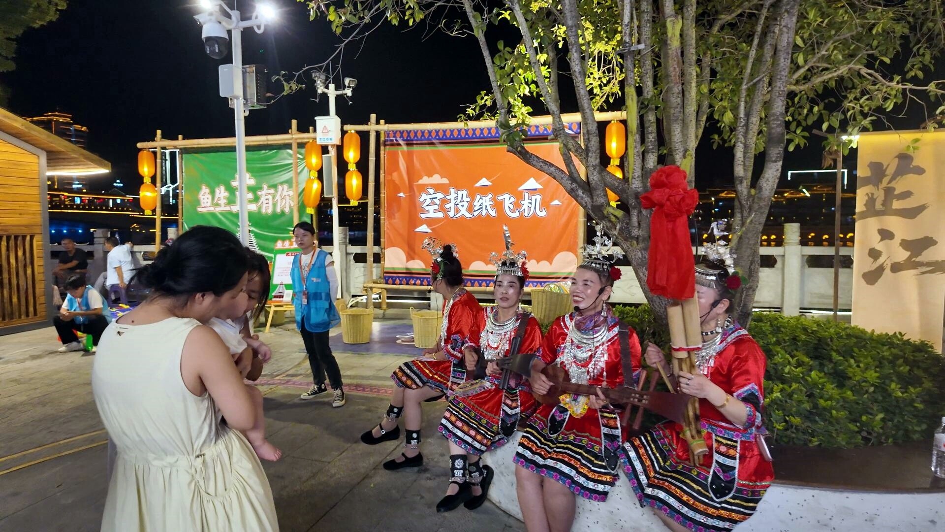 节日期间,非遗剧目《芷此千年》演绎芷江千年文脉,侗族非遗市集展示传统手工艺,吸引游客驻足观看。街头互动小游戏、空中楼梯表演、非遗广场歌舞等活动轮番上演,兼具视觉冲击与文化内涵。此外,芷江IP人偶、NPC及国漫COSER巡游互动,为街区注入年轻活力。