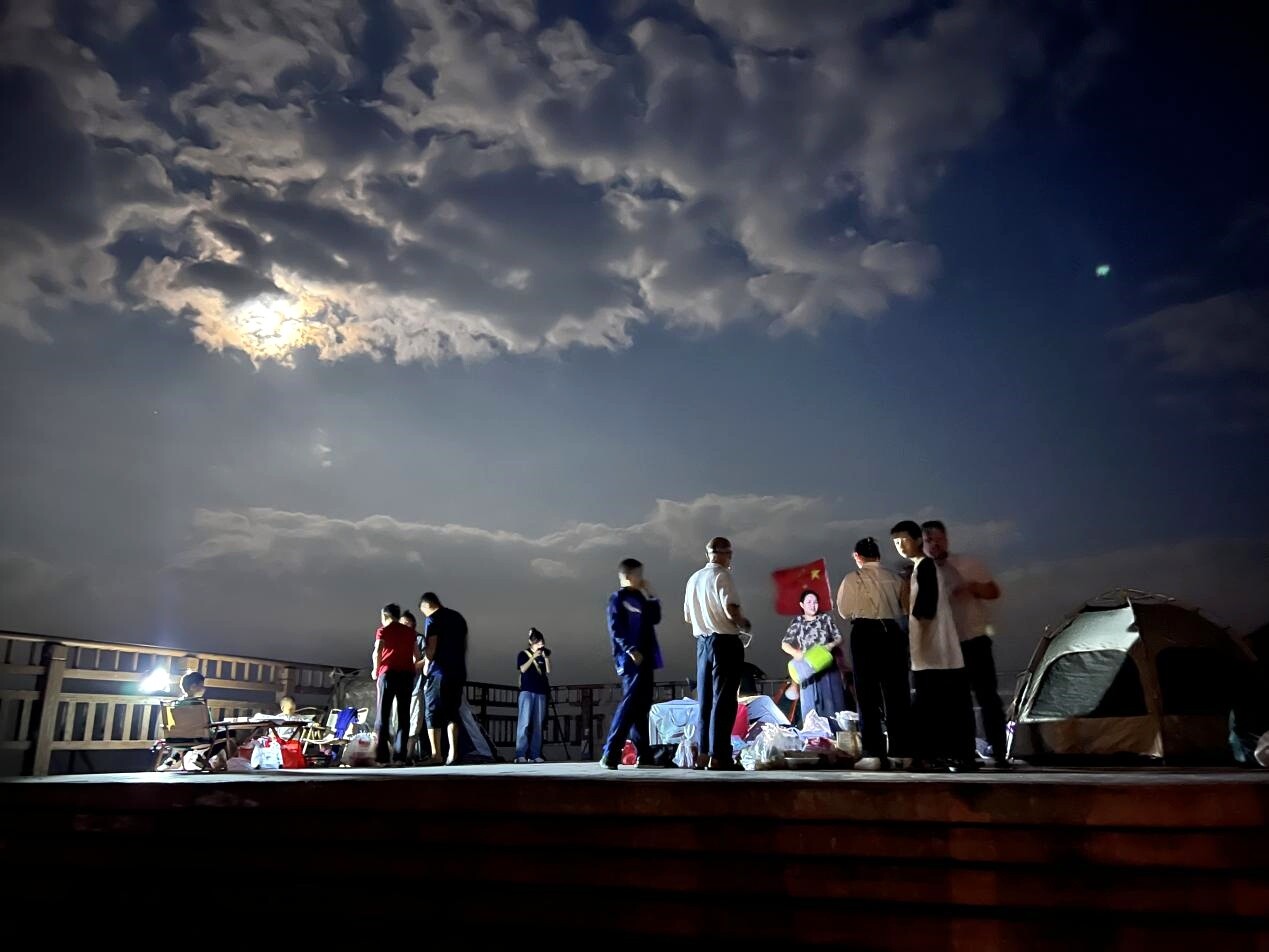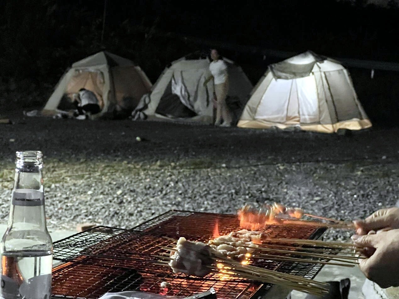 随着暮色降临,露营区逐渐飘起阵阵炊烟和食物的香气。许多游客支起烤架,亲手烹制美食,烤肉声滋滋作响,欢笑声此起彼伏。来自芷江本地的游客曾先生和朋友们享受着烧烤,他感慨:“在山顶和朋友一起烧烤、聊天,看月亮慢慢出现,这种体验比在城里过节有意思多了,特别放松和解压。”