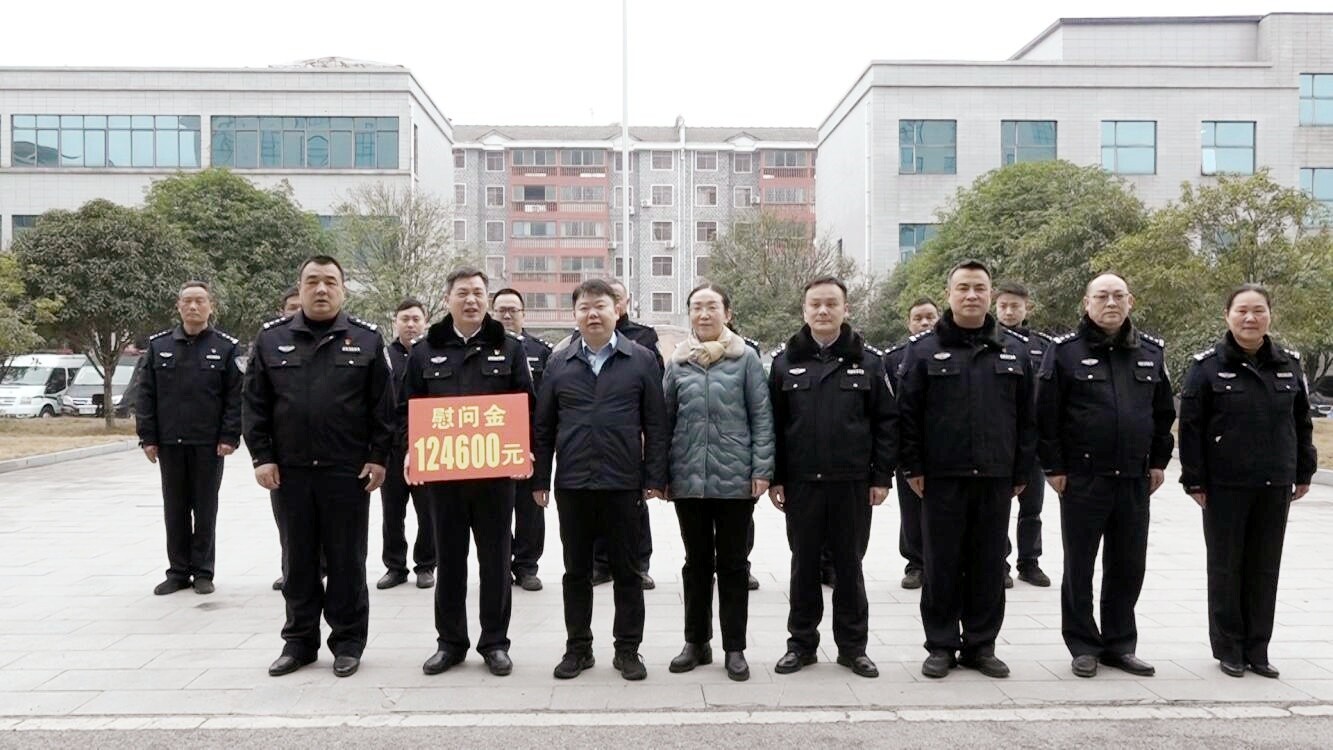 (2月5日,县委书记梁志平带队走访慰问县公安局公安干警)