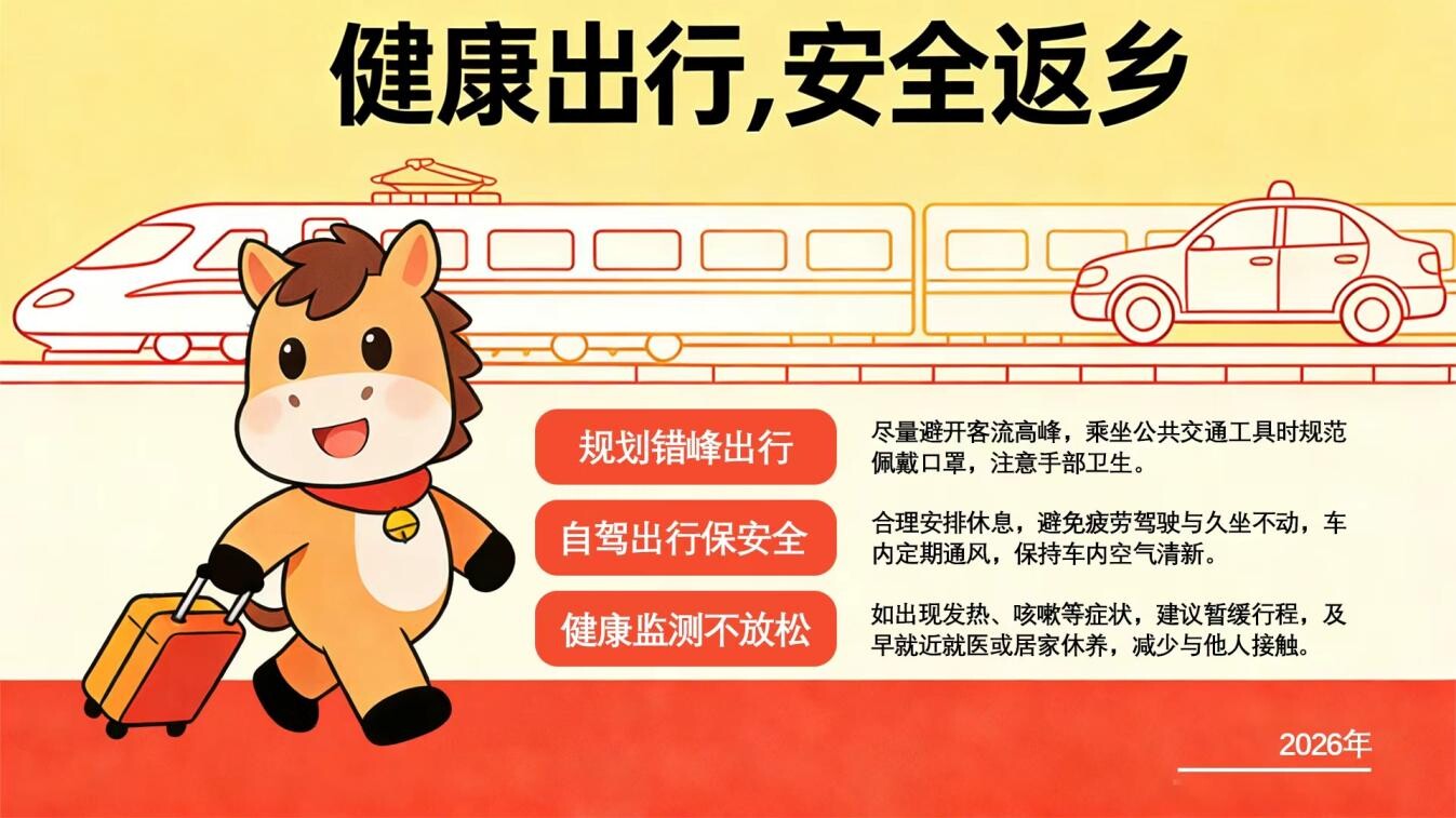 健康监测不放松:如出现发热、咳嗽等症状,建议暂缓行程,及早就近就医或居家休养,减少与他人接触。