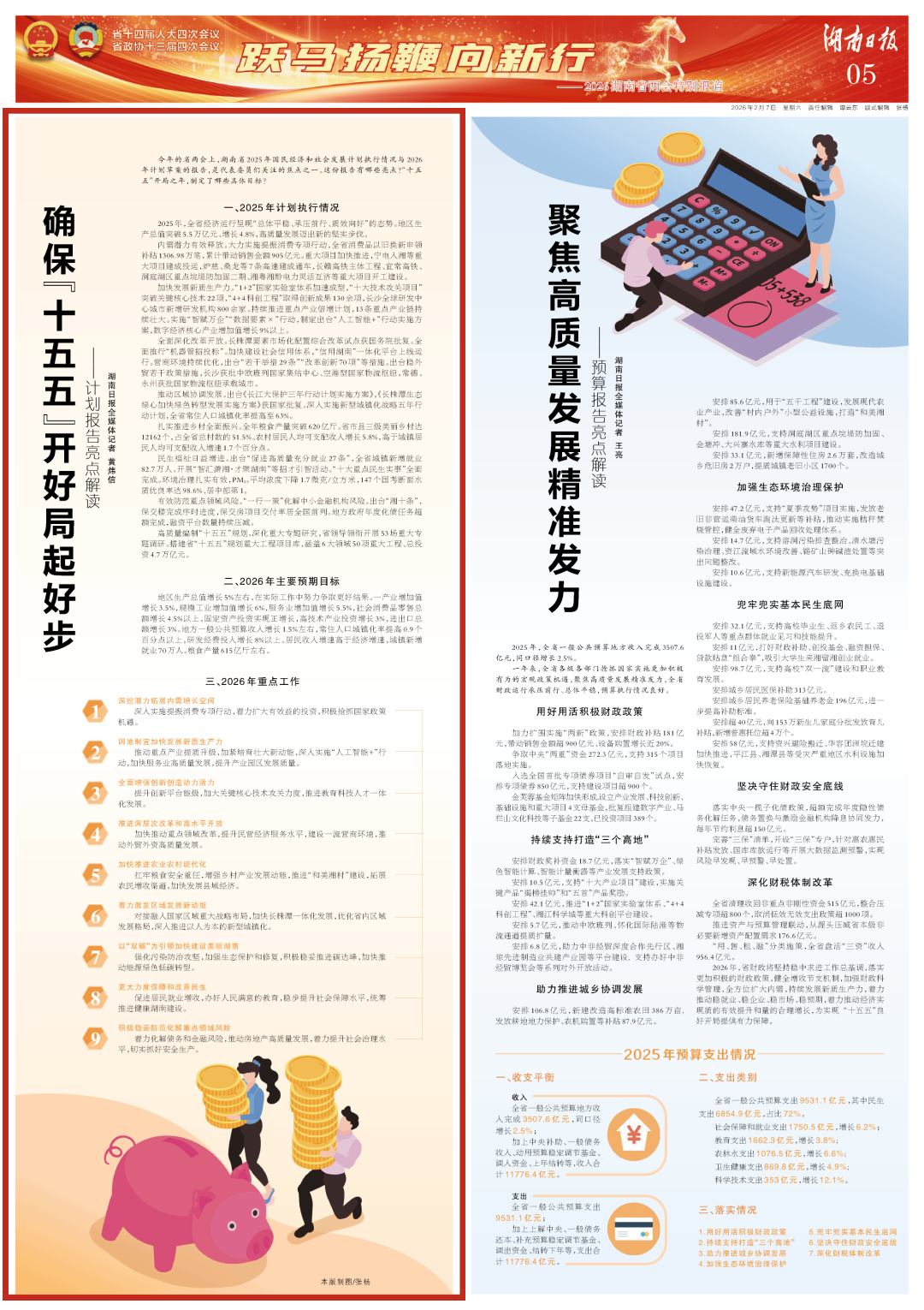 今年的省两会上,湖南省2025年国民经济和社会发展计划执行情况与2026年计划草案的报告,是代表委员们关注的焦点之一。这份报告有哪些亮点?“十五五”开局之年,制定了哪些具体目标?