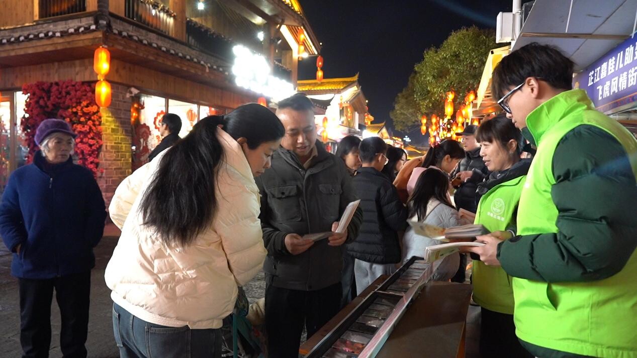 芷江融媒讯(记者 杨丽君 韦妹)3月3日晚,正值元宵佳节,芷江禁毒委员会、新时代文明实践中心、禁毒协会联合在飞虎风情街,以“花灯映平安 禁毒护团圆”为主题开展禁毒宣传活动,将禁毒教育融入传统民俗,在节日烟火气中传递防毒理念,助力平安芷江建设。