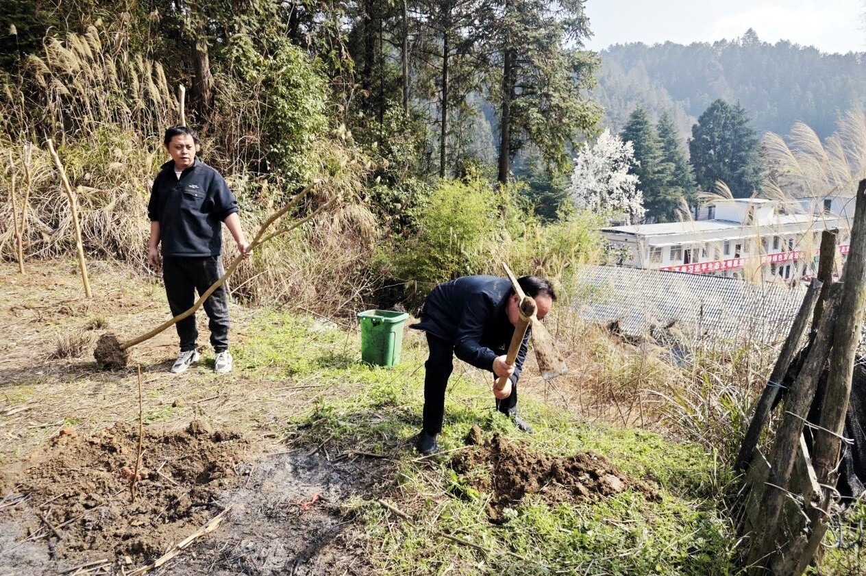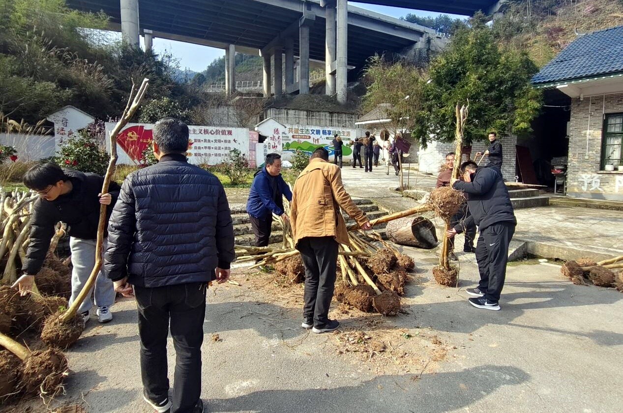 活动在五郎溪国有林场场部后山、五郎溪高速出口空地同步开展,参与干部职工热情高涨、分工明确、默契配合。大家手持铁锹、水桶等工具,严格按照栽植规范,有序完成定点挖坑、铲土扶苗、回填压实、浇水定根等流程,每一个环节都一丝不苟,现场劳动氛围浓厚。