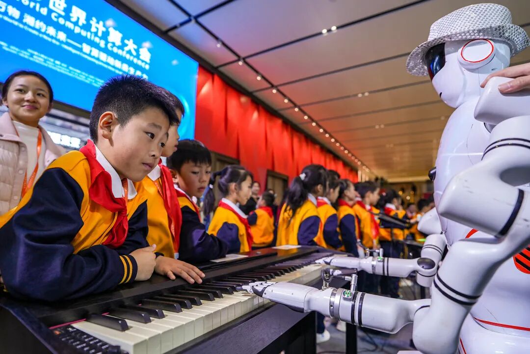2025年11月20日,长沙北辰国际会议中心,小朋友在与智能机器人互动。 湖南日报全媒体记者 童臻熙 摄