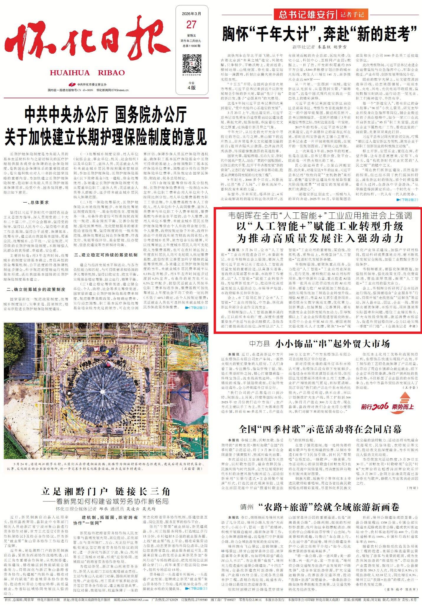 怀化日报全媒体讯 3月26日,全市“人工智能+”工业应用推进会召开。市委副书记、市长韦朝晖在会上强调,要深入贯彻习近平总书记关于推动人工智能高质量发展的重要论述,认真落实省委、省政府决策部署和市委、市政府工作要求,以“人工智能+”赋能工业转型升级,为培育新质生产力、推动怀化高质量发展注入强劲动力。市领导尹培国,市政府秘书长林华参加。