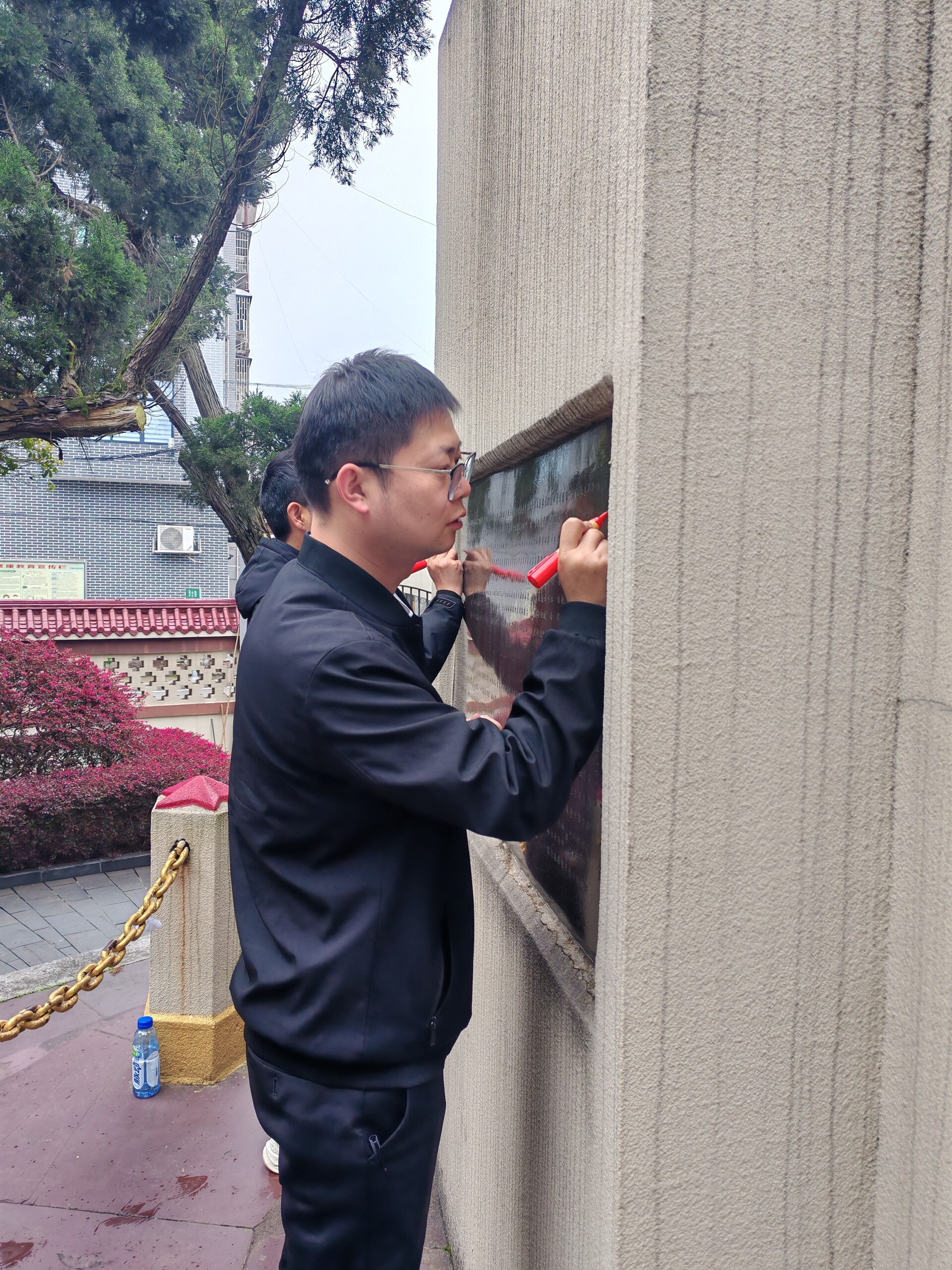 在庄严肃穆的烈士陵园,全体人员整齐列队,向剿匪烈士纪念塔敬献鲜花,表达崇高敬意。祭扫仪式后,工作人员与小学生手持画笔,为风化褪色的碑文和烈士姓名认真描红填色。经过近两个小时,烈士墓碑上的红星更加闪亮,姓名更加清晰。