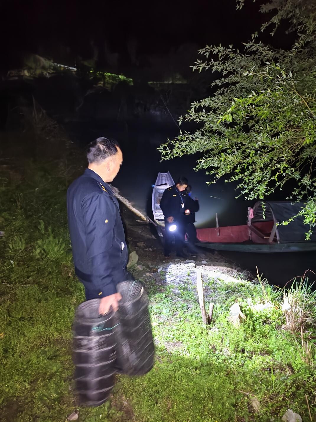 行动中,执法人员常态化沿河巡查,并驾驶执法艇进行水域排查,精准清查多处隐蔽打窝点,依法拖离违规无证船只。在此基础上,加强夜间及凌晨时段的突击执法,通过不定时、不定点“游击式”检查,有力打击了违法人员侥幸心理。同时,积极畅通群众举报渠道,健全“受理—核查—反馈”机制,鼓励全社会参与监督,推动形成“全天候响应、全社会参与、无规律打击”的立体化执法格局。