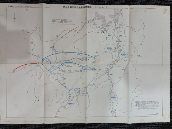 此次捐赠的作战地图极具史料价值,以芷江为核心,覆盖怀化、邵阳、常德、湘西自治州等会战关键区域,比例尺为1:50000。地图标注详尽、要素齐全,用不同颜色及符号清晰呈现日军第116师团、第47师团等主力部队的集结地、进攻路线、前沿阵地、炮兵阵地及补给线等核心军事部署,同时精准标注了中国军队的防御阵地、兵力布防要点,以及交通要道、桥梁、山脉、河流等关键地理与军事要素。