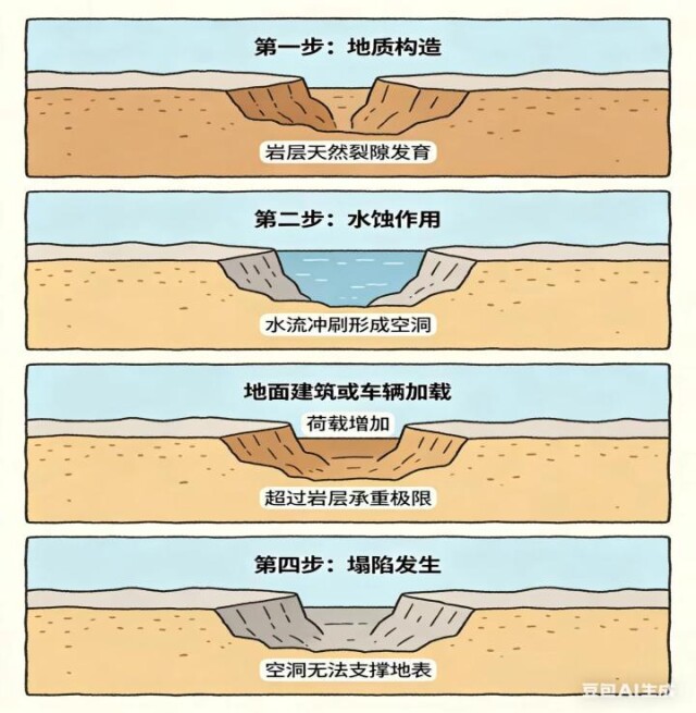 地面塌陷是最难以预防也最让人后怕的地质灾害。马路、小区人行道,走着走着突然塌出一个深不见底的大坑,连人带车都可能掉进去。