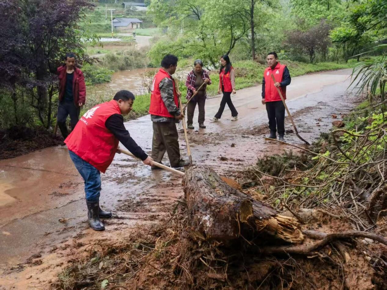 雨势稍歇,各驻村工作队第一时间响应,会同村“两委”干部,组织党员群众、公益性岗位人员和志愿者,投入雨后清障保畅工作。