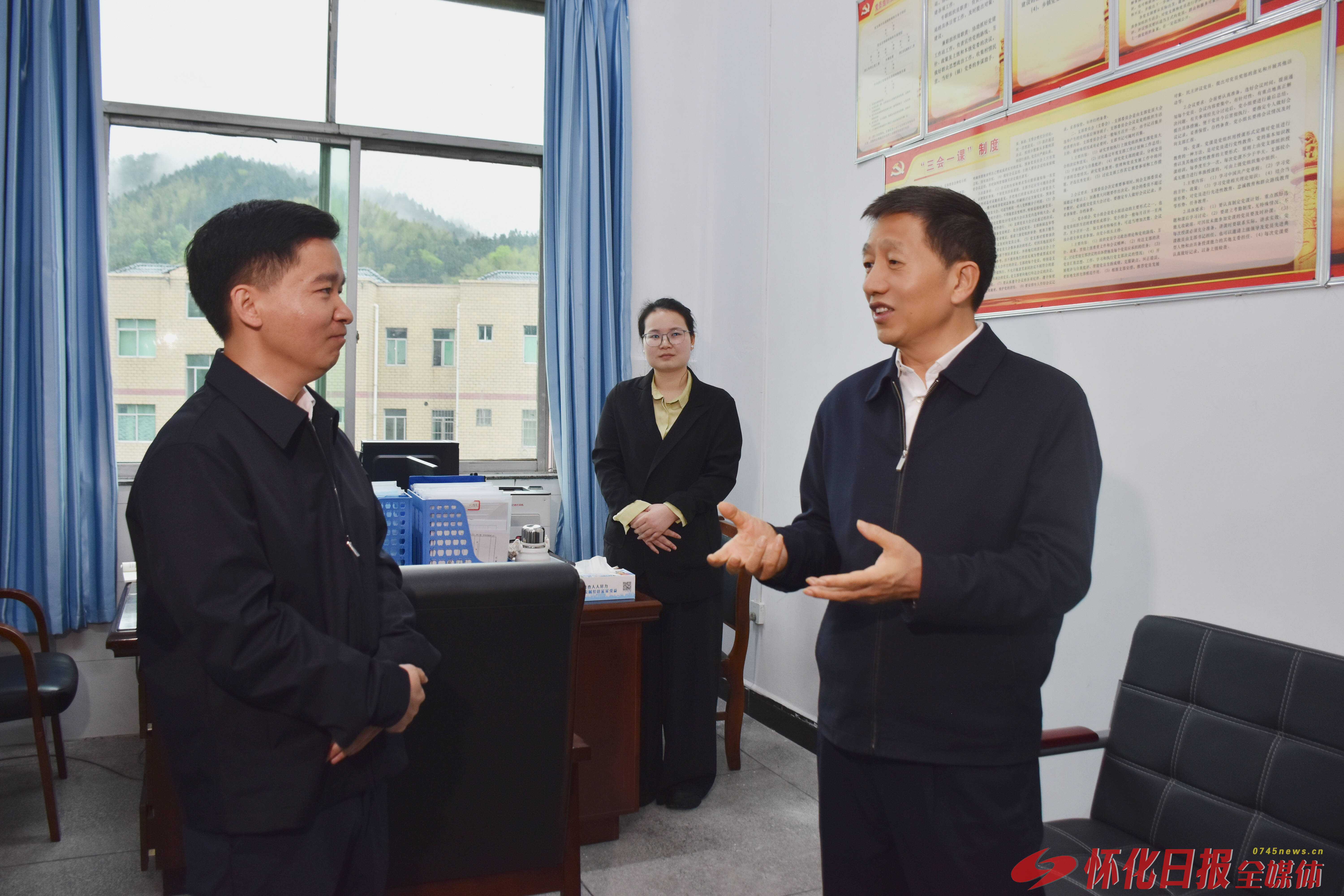 (4月16日上午,市委书记许忠建在洪江市调研。图为许忠建在铁山乡检查学习教育和安全生产、防汛备汛等工作情况。怀化日报全媒体记者 黄莎 摄)