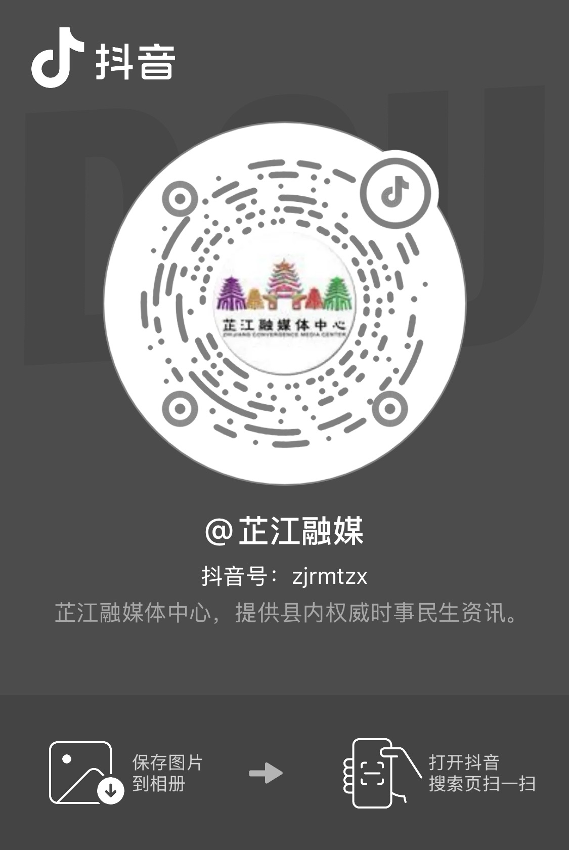 2. 打开抖音,扫码关注“芷江融媒”或“芷江篮协”官方号