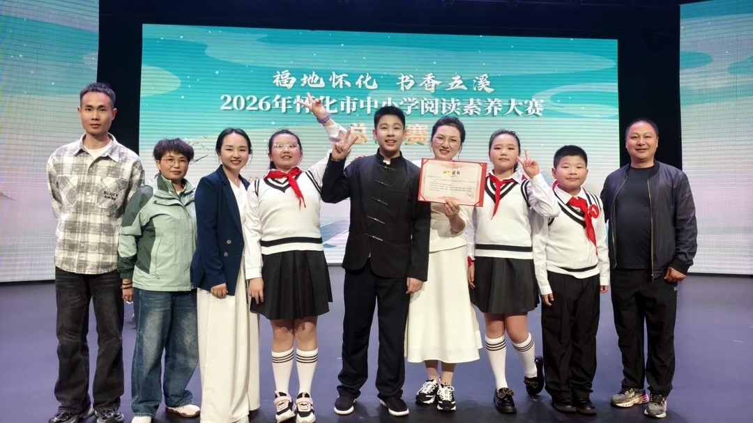 芷江融媒讯(通讯员 廖星星 刘婷) 近日,2026年怀化市中小学阅读素养大赛总决赛在怀化市电视台演播中心举行。芷江芙蓉学校代表队从全市20支参赛队伍中脱颖而出,勇夺小学高年级组总决赛一等奖第一名。