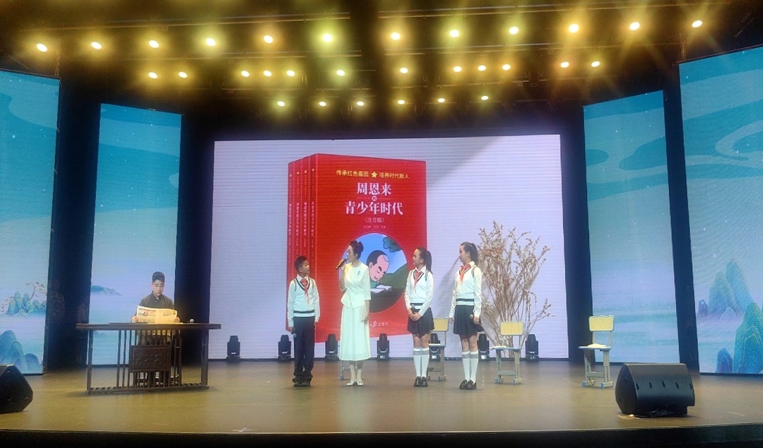 在“校园阅读成果展示”环节,该校青年教师以《以书润心 以读致远》为题作精彩阐述,尽情展示学校阅读育人的理念和成果。另一名教师带领4名同学,以优秀的综合素养和良好的精神风貌,通过阅读分享《周恩来的青少年时代》,以领袖周恩来从童年到青少年的成长历程,引导青少年树立远大理想,传承红色基因,出色的发挥赢得阵阵掌声。
