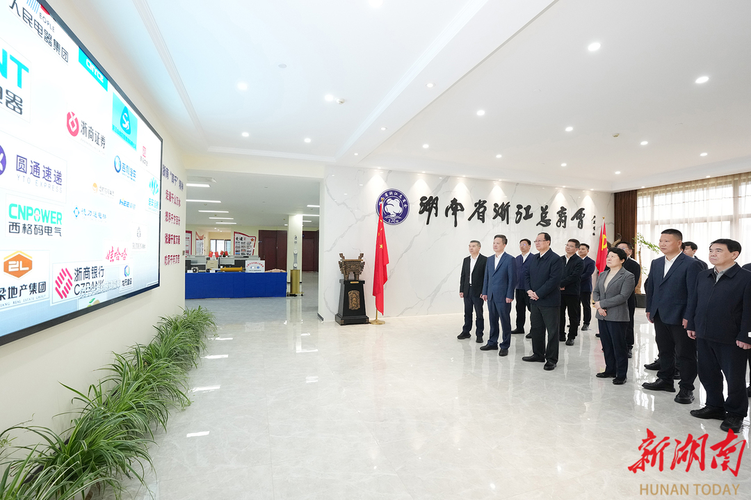 湖南省浙江总商会是我省规模最大的省级异地商会,拥有会员单位超2000家,在湘浙商累计投资总额突破1.2万亿元。毛伟明一行了解商会有关情况,并参观了浙商企业远航控股。该企业落户湖南以来,布局了人工智能、物联网感知等多个前沿领域,成为集智能制造、创新投资等于一体的多元化企业集团。毛伟明勉励商会负责人继续发挥“以商招商、以商引智”的桥梁纽带作用,聚焦湖南“三个高地”建设和构建现代化产业体系,推动更多优质企业项目落地湖南,引导更多优秀人才集聚湖南,与湖南发展同频共振、同向同行。