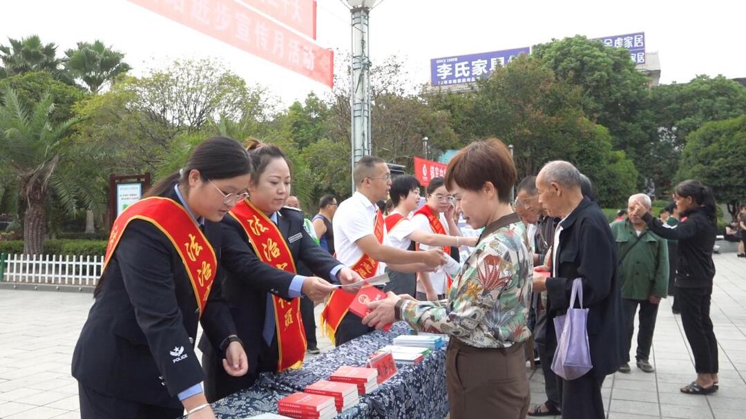 活动现场,志愿者通过悬挂宣传横幅、设置咨询台,积极向过往群众发放各类宣传资料,宣传党的民族理论政策,引导群众不断增强爱国意识、民族意识和法治意识。